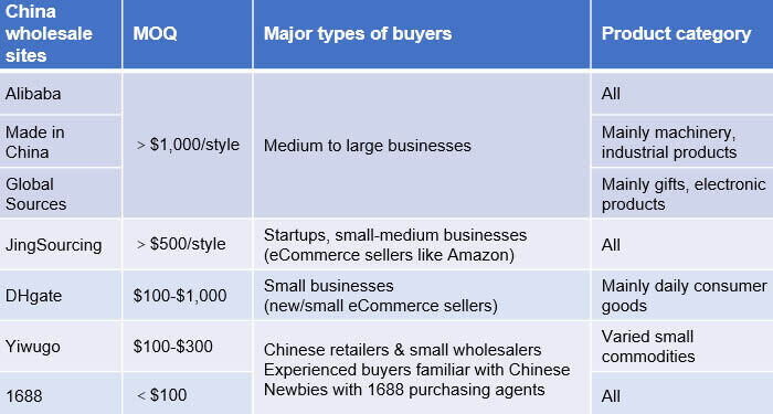 Regarding the MOQ (Minimum Order Quantity), Made in China and Global Sources are similar to Alibaba, suitable for medium to large wholesalers and retailers purchasing a few thousand dollars per style.